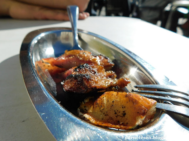 Единственное, что мне не особенно понравилось - закуска, которую подали вначале. Это были кусочки то ли свиных ушей, то ли кожи. Они жирные внутри, сверху хрустящие и пахнут палёным.